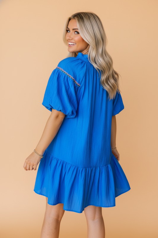 Flower Embroidered Puff Sleeve Ruffle Hem Dress