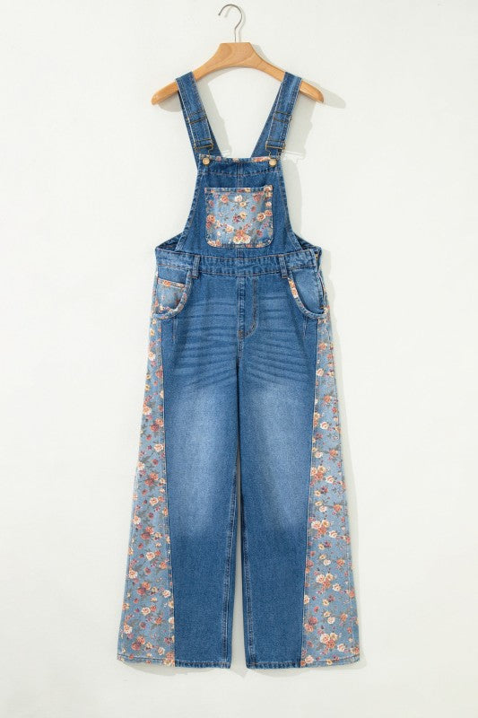 Floral Patchwork Bib Wide Leg Denim Overalls