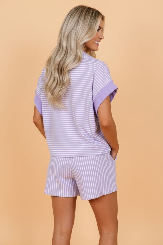 Stripe Dolman Sleeve Polo Shirt & Shorts Set Plus Size Available