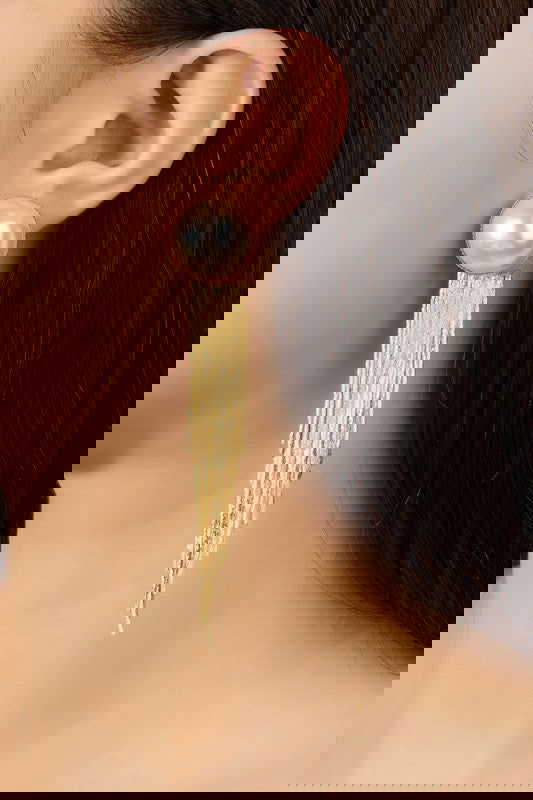 FRONT AND BACK PEARL EARRINGS WITH COBRA CHAIN TASSEL DROP