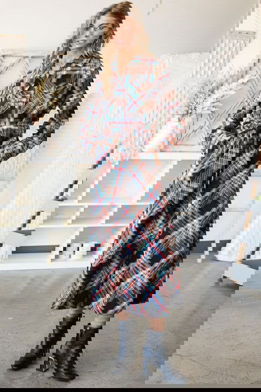 PLUS SIZE PLAID BELTED Maxi DRESS