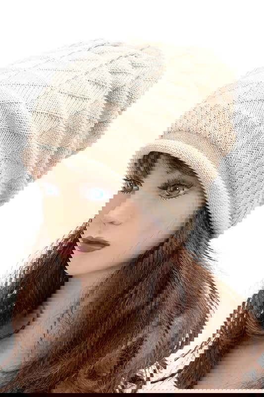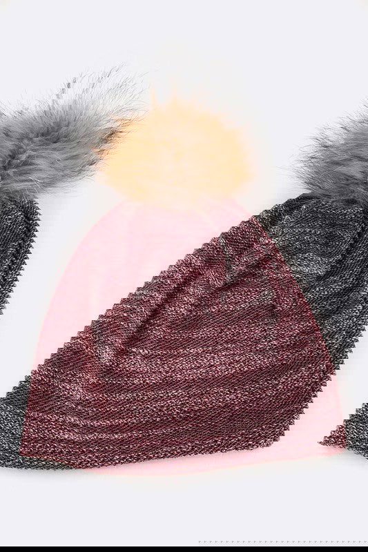 Faux Fur Pom Cotton Blend Slouchy Beanie