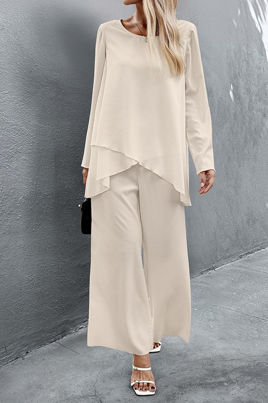 Two Pieces Round Neck Asymmetry Hem Wide Leg Set