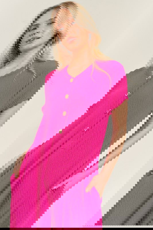 PLUS SIZE TEXTURED SHORT SLEEVE JUMPSUIT