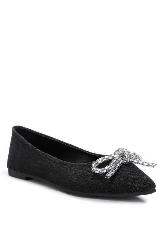 Rhinestones & Stud Embellished Microfiber Ballet Flats