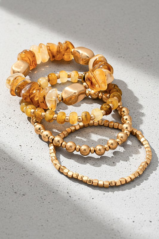 Amber Resin & Metal Bead Stacking Bracelet Set