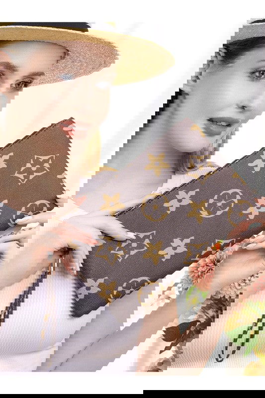 Queen Bee Stripe Ostrich Double Zip Around Wallet