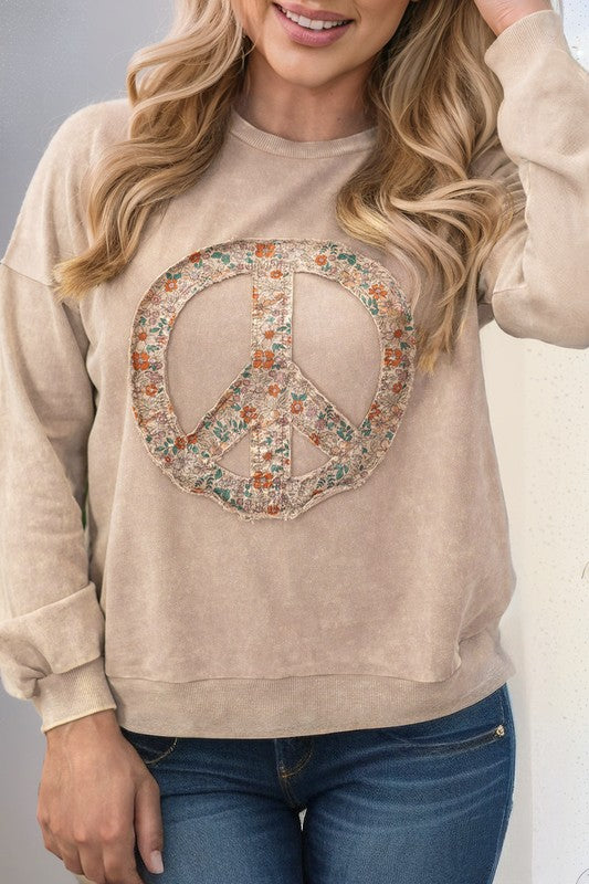 Floral Peace Graphic Washed Plus Size Sweatshirt