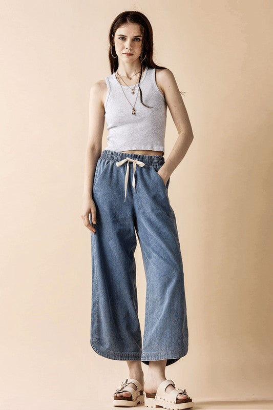 Plus Denim Wide Leg Crop Pants with Dolphine Tail