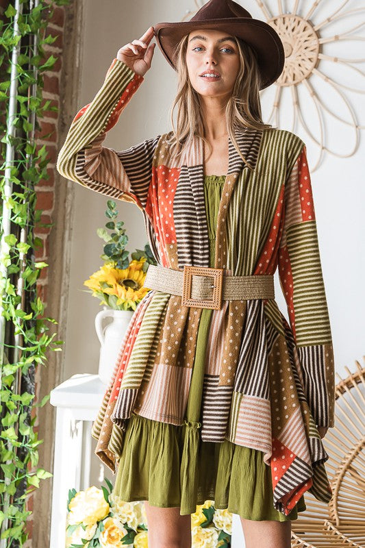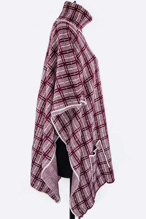 AZTEC PRINT COWL NECK OVERSIZED PONCHO