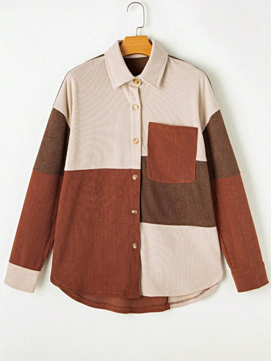 Stripe Roll-tab Sleeve Pocketed Long Shirt