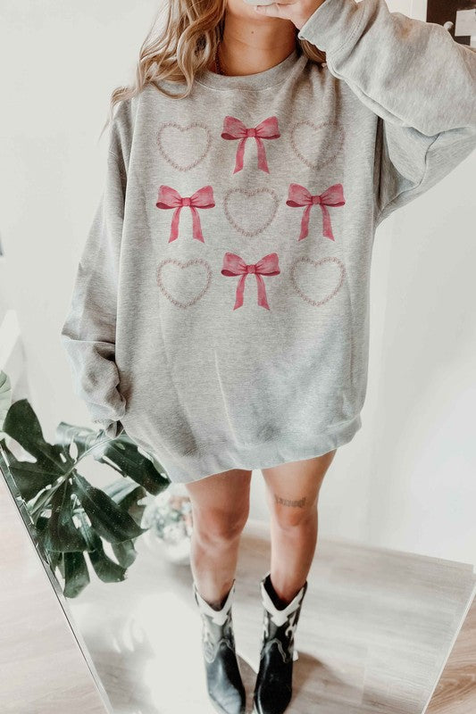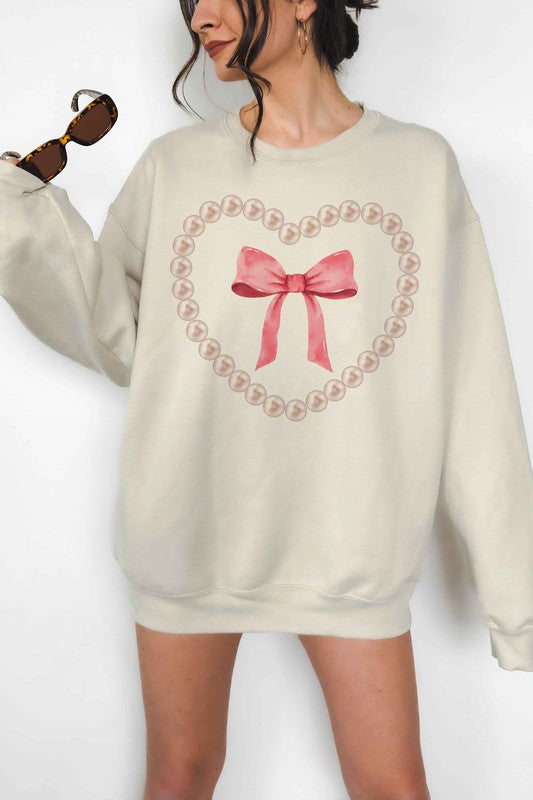 PEARL HEART BOW GRAPHIC SWEATSHIRT
