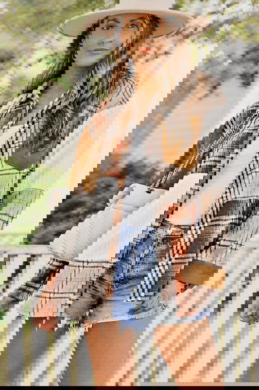 Plaid Color Block Patchwork Pocket Shirt Shacket