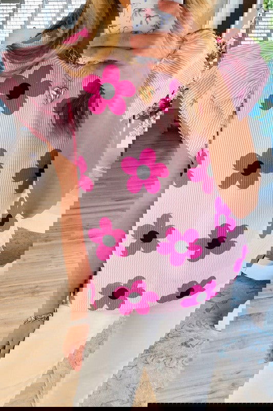 Floral Pinstripe Ruffled Flutter Sleeve Blouse