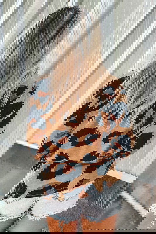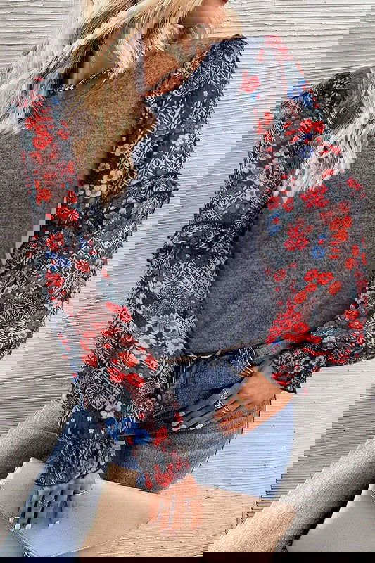 Women Ruffle Tiered Floral Sleeve Crew Neck Blouse