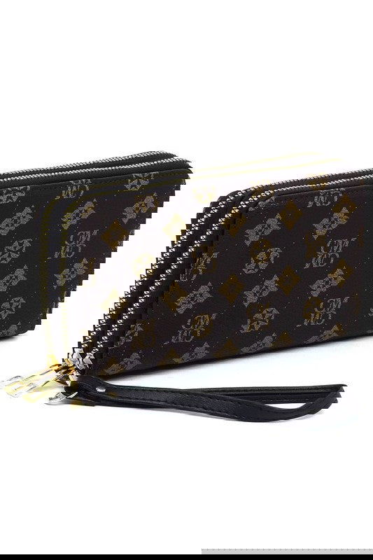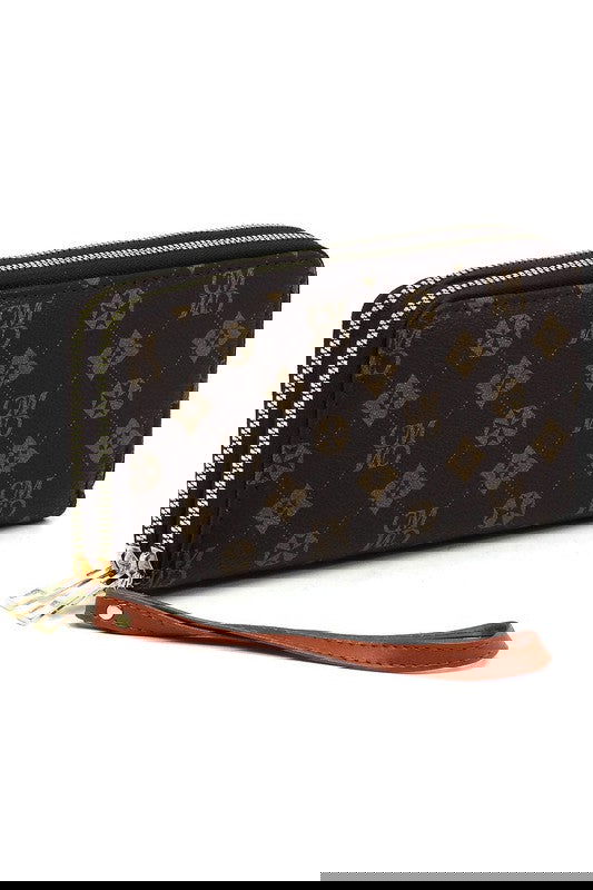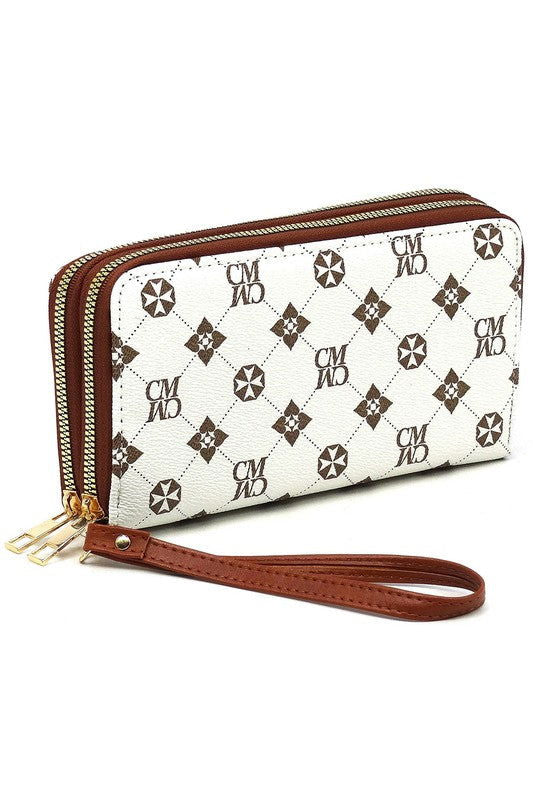 CM Monogram Double Zip Around Clutch Wallet Wristlet
