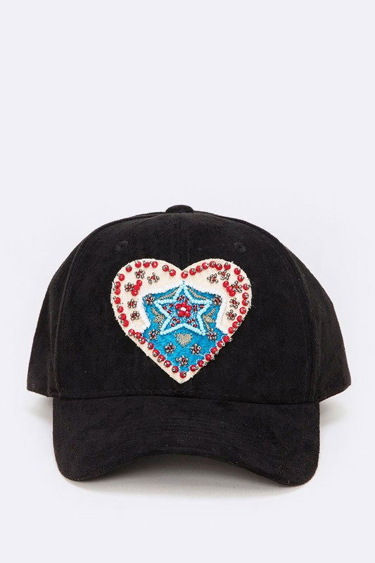 Embroidered Heart Patch Iconic Suede Cap