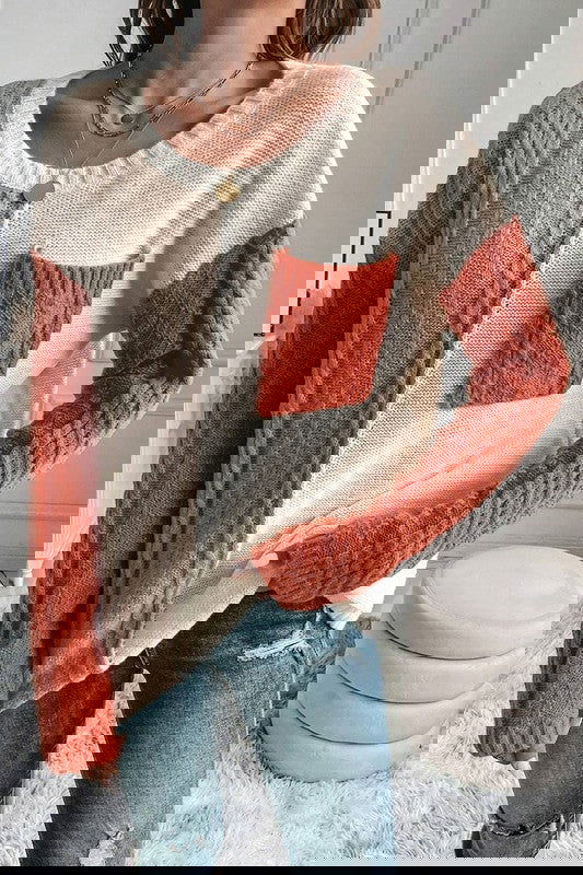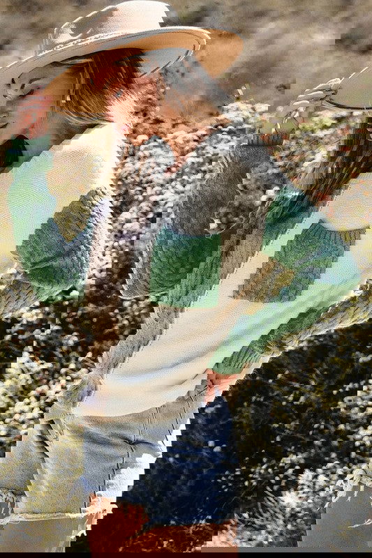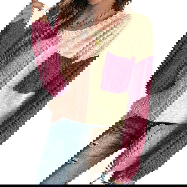 Vibrant color blocking gives this winter sweater a bold, fashionable statement.