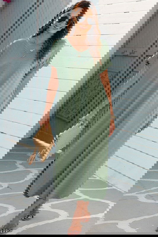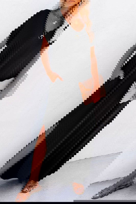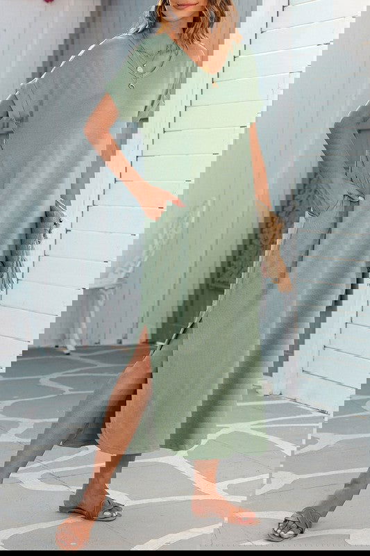Sexy v neck, short sleeves, side pockets and splits